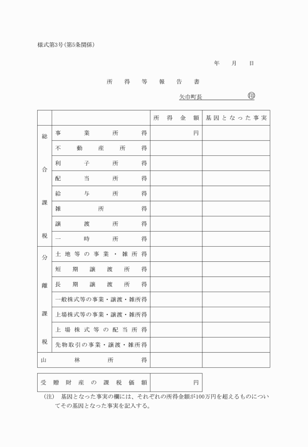 第4条 条例第3条第1号イの規則で定める所得の金額は、所得税法(昭和40年法律第33号)第2条第1項第22号に規定する各種所得の金額(退職所得の金額及び山林所得の金額を除く。)のうち、租税特別措置法(昭和32年法律第26号)の規定により、所得税法第22条の規定にかかわらず、他の所得と区分して計算される所得の金額とする。