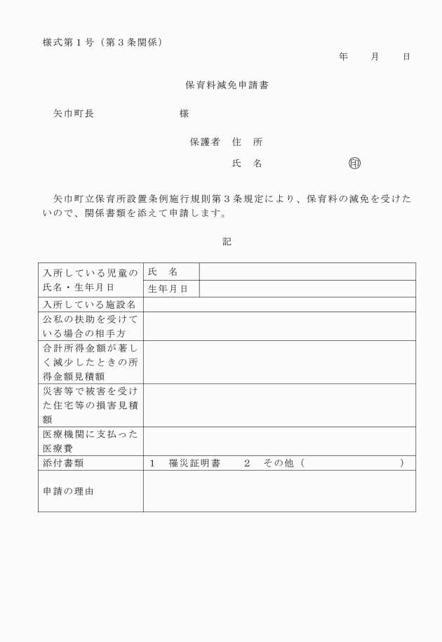 第3条 町長は、条例第5条の規定により必要があると認めたときは、保育料を減額し、又は免除することができる。