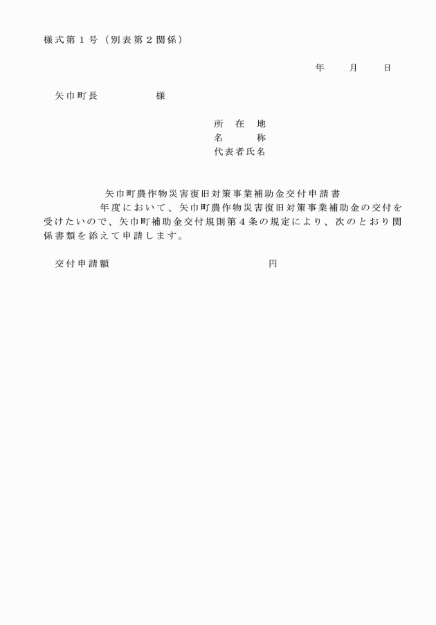 ○矢巾町農作物災害復旧対策事業補助金交付要綱