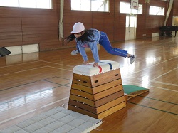 4年生は、跳び箱運動をしていました。開脚跳び、かかえ込み跳び、台上前転などの技を頑張りました。